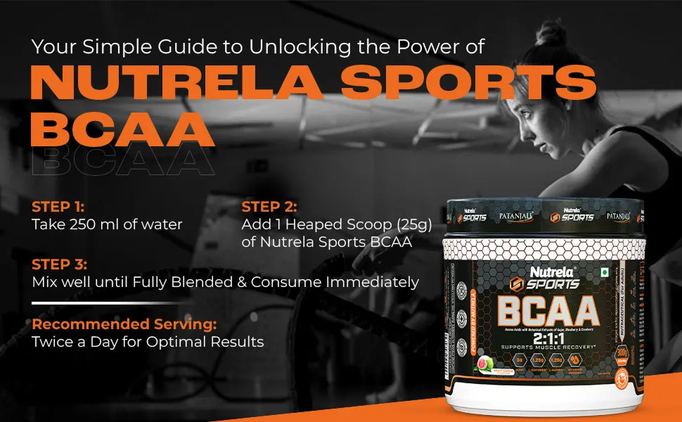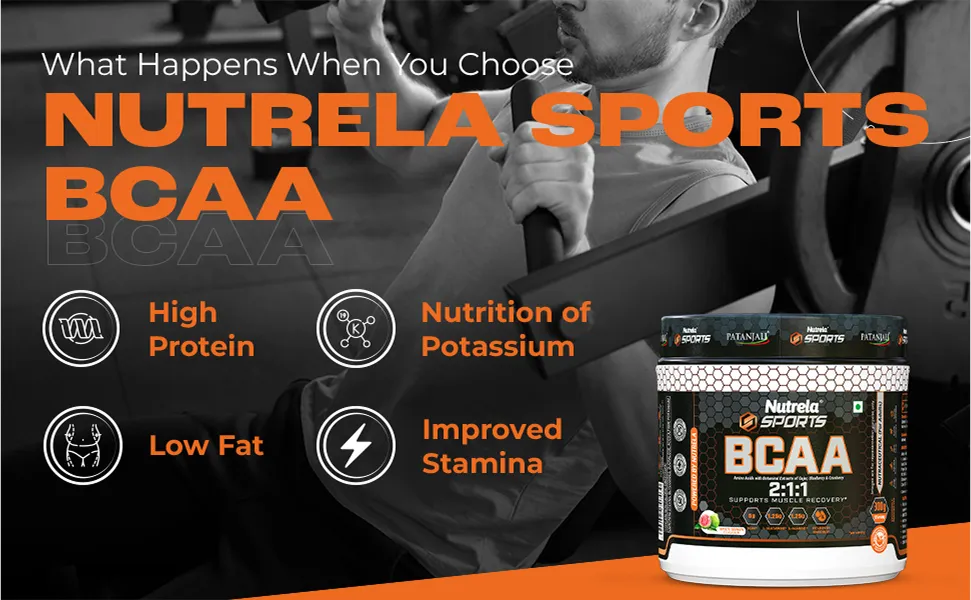 Unlock peak performance with Nutrela Sports BCAA Spicy Guava, a premium blend of essential amino acids designed to fuel your muscles and accelerate recovery. Elevate your performance with Nutrela Sports BCAA, featuring essential amino acids and natural extracts like carrot, blueberry, and cranberry. Boost endurance, support recovery, enhance vision, and fight oxidative stress with this premium formula. Packed with Essential Amino Acids: 1.25 g L-Glutamine, 1.25 g L-Alanine, and vitamin B6-rich with natural ingredients and botanical extracts of carrot, blueberry, and cranberry. Infused with natural extracts like Carrot, Blueberry, and Cranberry.