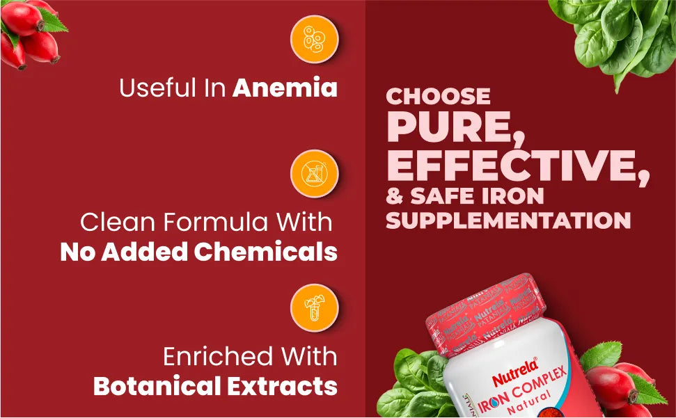 Patanjali Nutrela Iron Complex Natural is scientifically designed ayurvedic proprietary product to restore iron levels in the body, combats weakness and useful in anemia. It consists of botanical extracts of Spinach and rose hips along with Mandoor Bhasma. Anemia is a condition in which the number of red blood cells or the hemoglobin concentration within them is lower than normal. Globally, around 30% of women (aged 15-49) are anemic.1