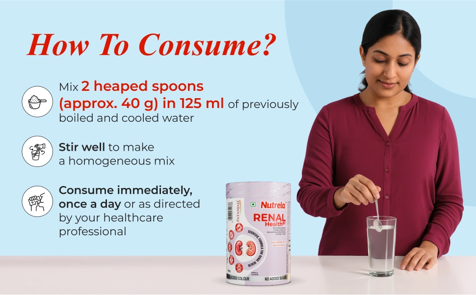 In today’s fast-paced world, where poor dietary habits, uncontrolled diabetes, hypertension, and rising pollution levels are becoming increasingly common, kidney health is more vulnerable than ever before. The kidneys, though often overlooked, play a vital role in maintaining internal balance by filtering waste, regulating blood pressure, maintaining electrolyte levels, and ensuring overall detoxification. Presenting Nutrela Renal Health, a scientifically formulated nutritional supplement for renal health enriched with whey protein concentrate, L-Carnitine & L-Taurine, vitamin C & E, FOS with 7 botanical extracts.