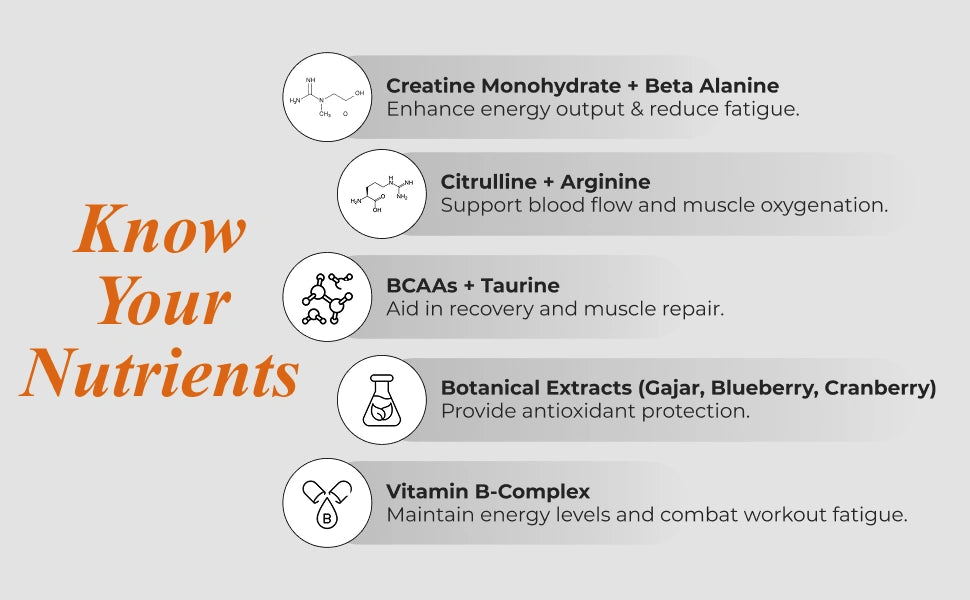 Patanjali Nutrela Sports Pre-Workout boosts energy, stamina, and focus for harder training sessions. Powered with Beta Alanine, L-Citrulline, Creatine, Taurine, Caffeine & BCAAs, it enhances performance, strength, and mind-muscle connection. Includes Vitamin C, B6, B12 & Zinc for active nutrient support with zero added sugar. The Watermelon flavour dissolves fast, ideal for weight training, HIIT, cardio & sports workouts.