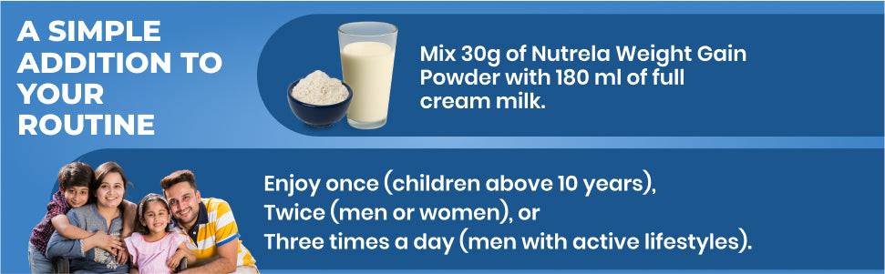 To have an ideal weight is not so easy, especially when someone is underweight. Introducing Patanjali Nutrela Weight Gain is a scientifically curated product for those individuals looking to add healthy weight and muscle mass. It is a blend of 20 g* protein, 8 g* fat, and 66.8 g* carbohydrates along with 16 botanical extracts, 13 key vitamins, and 12 minerals that helps in increasing body weight. (*per 100g).