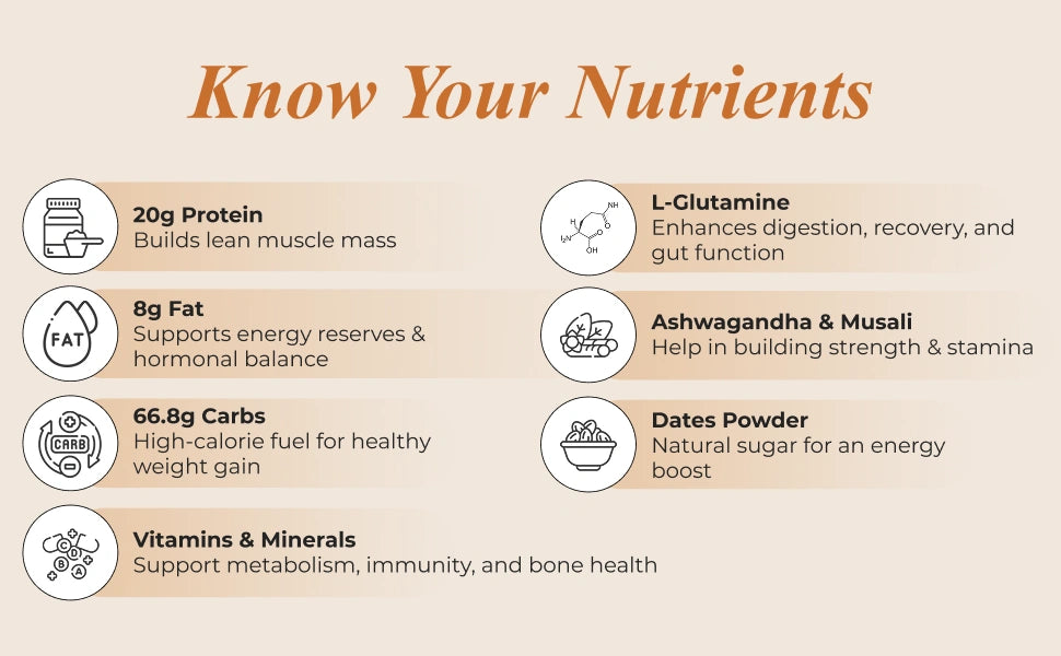 Struggling to gain weight the healthy way? To have an ideal weight is not so easy, especially when someone is underweight. Patanjali Nutrela Weight Gainer is a scientifically formulated blend designed to help you achieve your ideal body weight with the right balance of protein, carbohydrates, vitamins, minerals, and powerful herbs. Each serving delivers: ✅ 18g high-quality protein from soya protein isolate, whey protein concentrate, and milk solids ✅ 377 kcal energy to support healthy weight gain ✅ 13 essential vitamins & 12 minerals to boost stamina, strength, and immunity ✅ 16 botanical herbs including Ashwagandha, Shatavari, Musali, and more for natural vitality and improved digestion ✅ Dietary fibre & L-Glutamine to aid better absorption and gut health With bio-fermented extracts, calcium, iron, and antioxidants, this weight gainer ensures complete nutrition while helping you build lean muscle and gain mass without unhealthy fats..